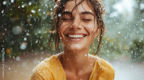 Joyful children playing in a village fountain on a sunny day, splashing water and laughing