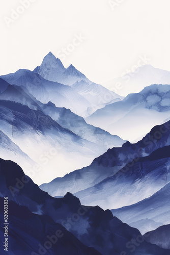 Serene mountain landscape at sunset with majestic peaks and soft hues