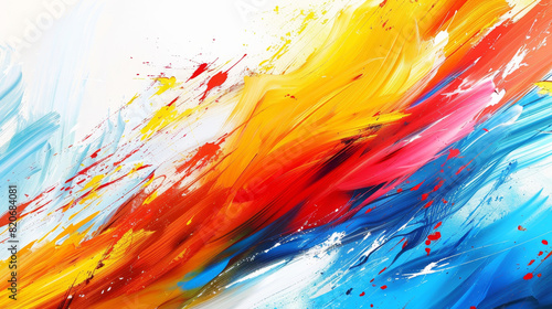 Vibrant abstract painting depicting energetic splashes of color in dynamic motion