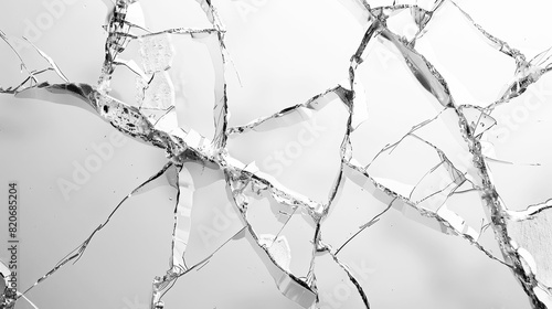 Cracked glass texture creating an abstract and jagged monochrome pattern background