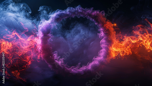 Abstract circular ring of smoke with glowing purple and orange colors