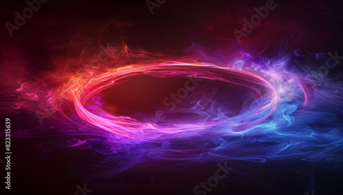 Glowing abstract ring with purple and red lights on black background