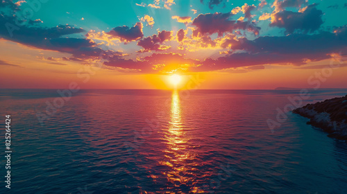 Breathtaking sunset over the ocean with vibrant sky and tranquil sea