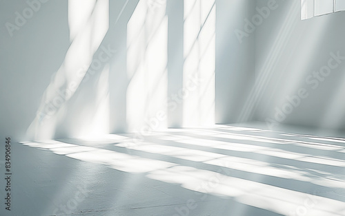 Abstract white light beams casting shadows in a minimalistic and modern empty space