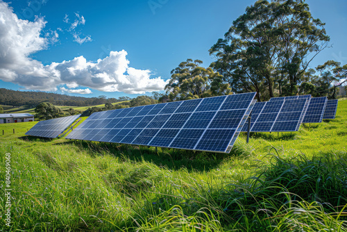 Renewable energy solar panel on summer meadow (Generative AI)