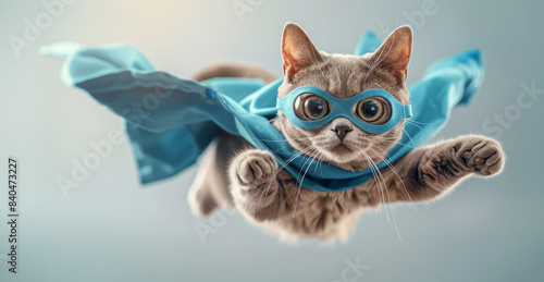 Orange tabby cat curiously peeking around the edge of a blue wall