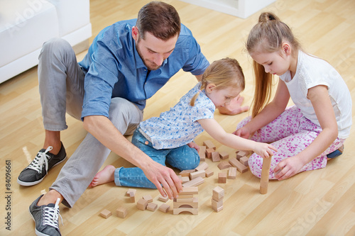 Vater und Kinder spielen mit Bausteinen