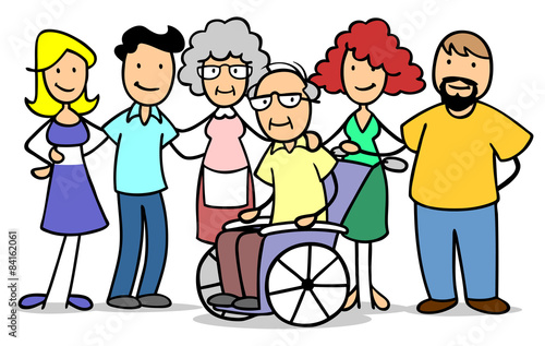 Familie mit Senior im Rollstuhl