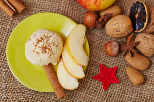 Zimteis zu Weihnachten mit Apfel und Nüssen