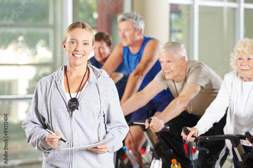 Frau als Trainerin für Senioren im Fitnesscenter