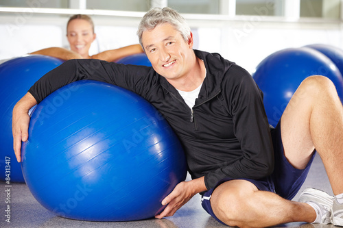 Älterer Mann mit Gymnastikball im Fitnesscenter