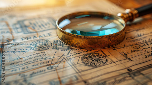 Vintage magnifying glass over a complex patent document