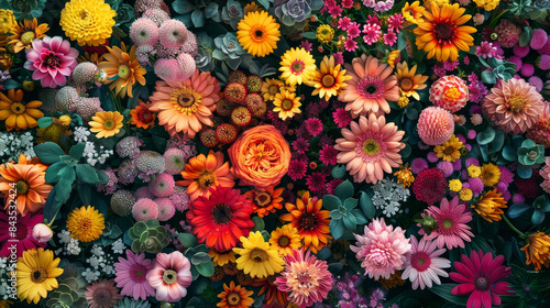 Panorama of a vibrant flower garden with colorful spring blossoms