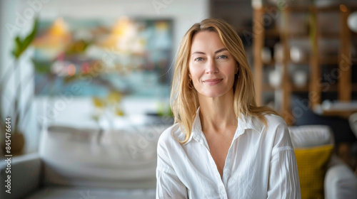 Portrait of a smiling businesswoman in her 30s with a confident look in office setting