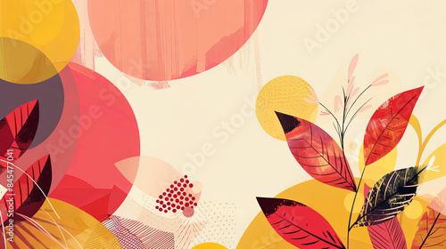 Abstract Neo-Dada style artwork with autumn colors and dynamic shapes