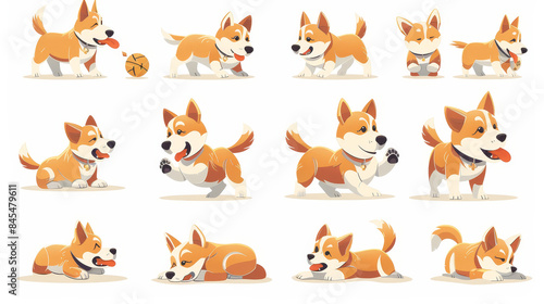 Cute cartoon dogs engaging in playful and adorable canine activities