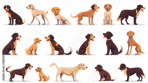 Collection of various dog illustrations showcasing different breeds and behaviors