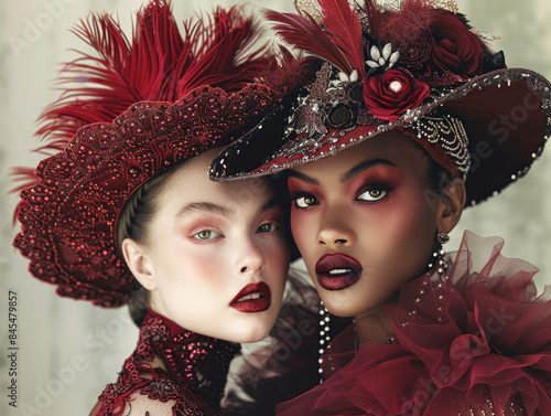 High-fashion editorial portrait of glamorous models in exquisite attire