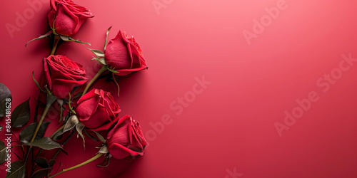 Valentines day banner with red roses on a pink background