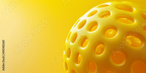 Close-up of pickleball flying over net on a sunny day, 3D rendering