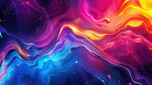 Abstract neon colors in liquid paint swirls creating vibrant art