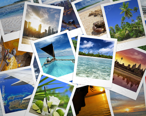 Luxurious tropical resort with white villas and palm trees overlooking a cityscape