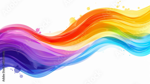 Curved abstract rainbow wave with vibrant colors and artistic splashes