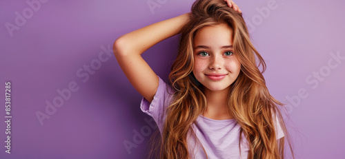 Smiling Australian teenager with short brown hair in a purple hoodie exuding joy and positivity in a casual portrait