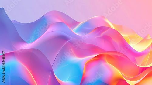 Modern 3D abstract art with colorful gradient waves and Y2K aesthetic in pastel hues