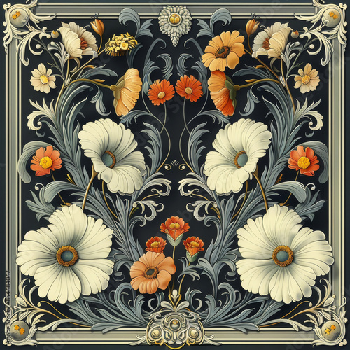 Elegant Art Nouveau floral design with ornate details and vintage charm