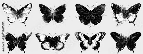 Hand-drawn vector illustration of various butterfly species in monochrome