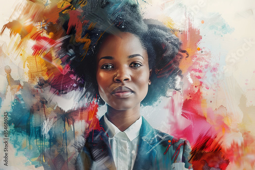 Inspiring photorealistic artwork of a confident black woman in professional attire