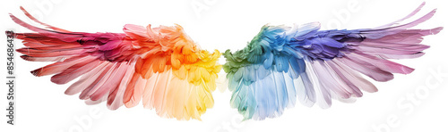 Colorful rainbow angel wings isolated on white background