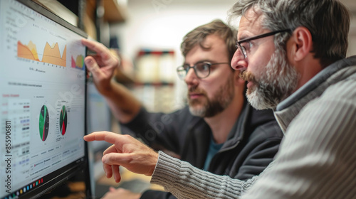 Manager als Berater zeigt auf Diagramm am Computer Monitor