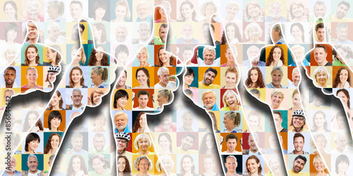 Daumen hoch vor Portraits von aktiven Menschen vieler Generationen