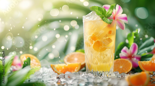 Colorful tropical cocktails with fresh fruits and garnishes in vibrant glasses