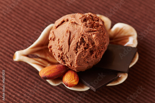 Dunkles frisches selbstgemachtes Schokoladeneis mit Schokolade