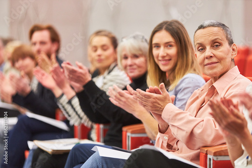 Panorama aus Silhouetten von Geschäftsleuten vor bunten Business Portraits
