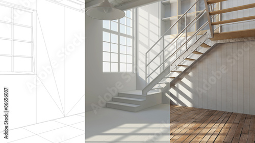 Wand im Zimmer einer leeren Wohnung mit Balkon