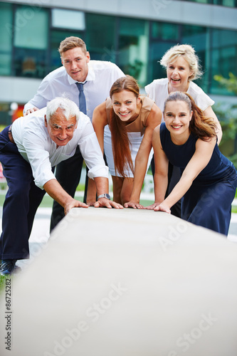Motivated business team working together