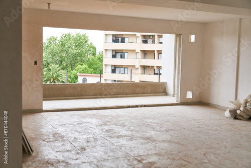 Raum nach Spachtelarbeiten bei Hausbau vor Malerarbeiten