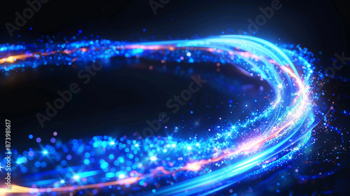 Abstract light waves with glowing gold dots and bokeh in a dark background