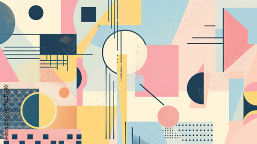 Colorful abstract art in Deconstructivism style with pastel tones and geometric shapes