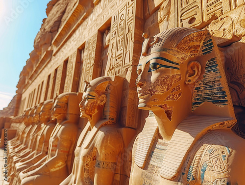 Majestic Ramesses II sculptures at Abu Simbel during a bright sunny day