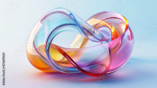 Abstract colorful glass shape 3D render with smooth curves and vibrant gradient colors