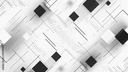 Abstract geometric pattern with overlapping black and white shapes and lines