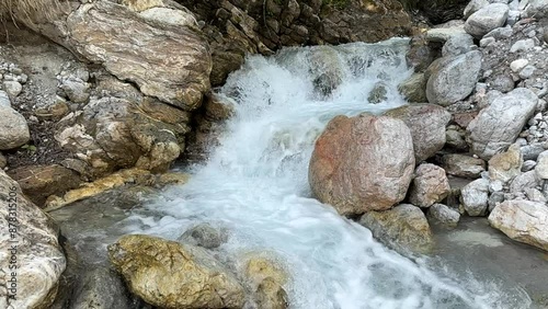 River Water Flowing Over Rocks: A Serene Nature Video in Slow-Motion.