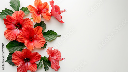 White hibiscus flowers on a white background, close-up view of delicate blooms
