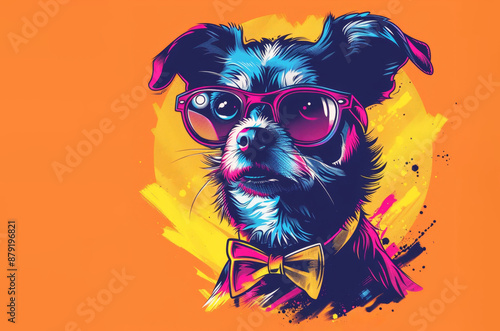 Portrait of a Shih Tzu dog in a studio setting with vibrant colorful lighting and a medium format style