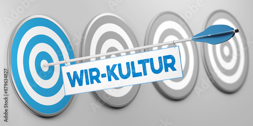 Pfeil mit Schriftzug „Wir-Kultur“ als Volltreffer in Mitte einer Zielscheibe
